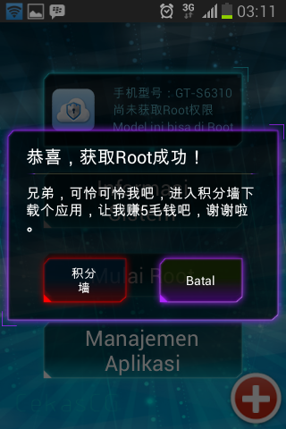 5. Tekan tombol batal (ungu). Jika muncul cloud root artinya tidak support perangkat.