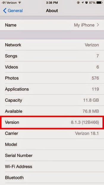 3. Lihat tulisam Version. Untuk mengetahui iOS yang sekarang kalian gunakan, kalian lihat angka pertamanya. Misalkan 8.1.3, berarti sekarang kalian sedang menggunakan iOS 8. Selesai deh.