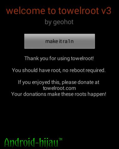 Klik tulisan "Make it ra1n" untuk melakukan proses root. 3. Jika keluar tampilan seperti gambar di bawah. Maka anda telah berhasil melakukan root.